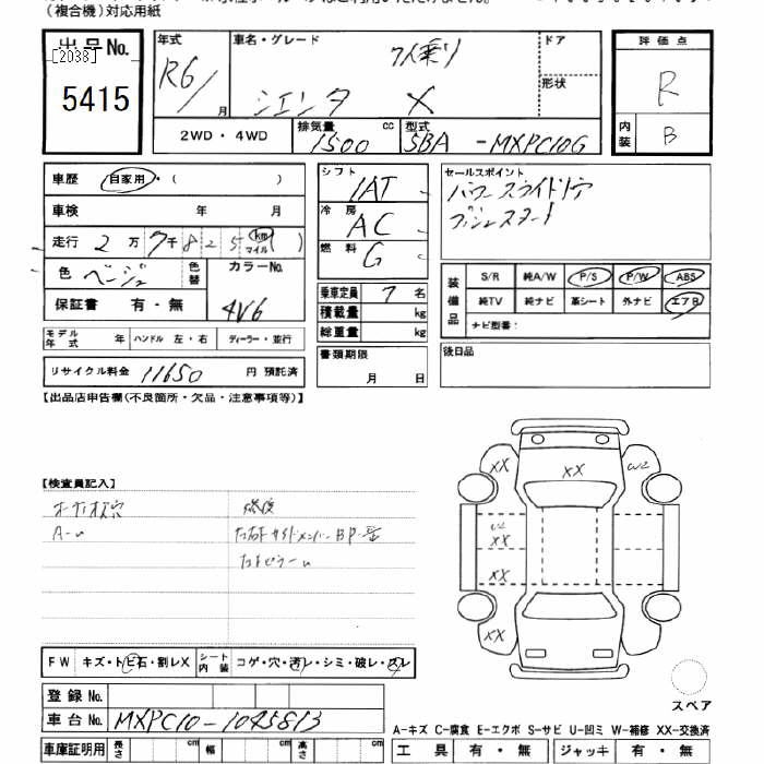 TOYOTA SIENTA - лот 5415