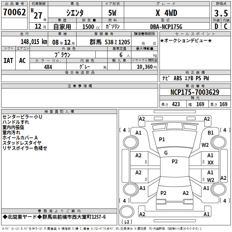 TOYOTA SIENTA - лот 70062