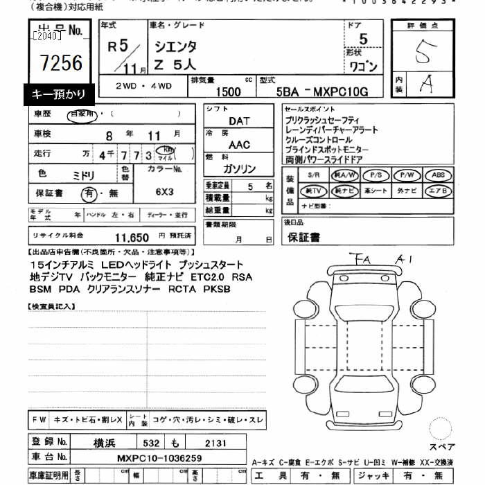 TOYOTA SIENTA - лот 7256