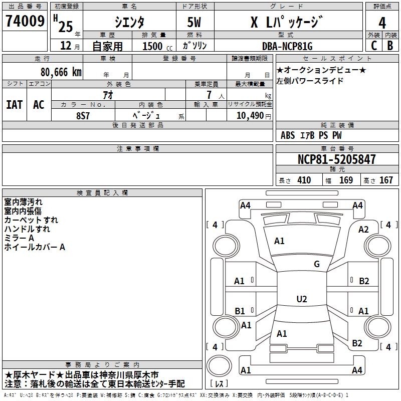 TOYOTA SIENTA - лот 74009