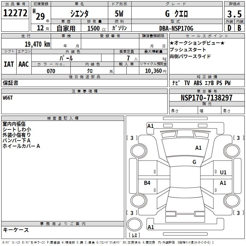 TOYOTA SIENTA - лот 12272