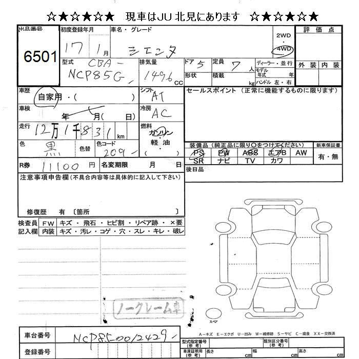 TOYOTA SIENTA - лот 6501
