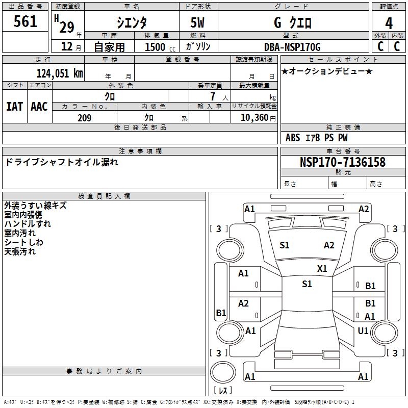 TOYOTA SIENTA - лот 561