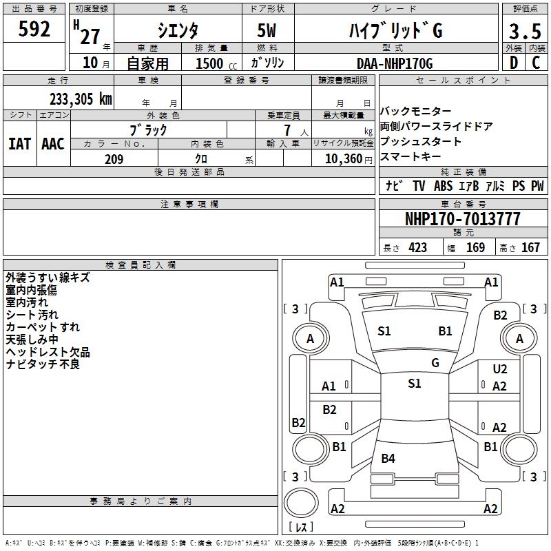 TOYOTA SIENTA - лот 592