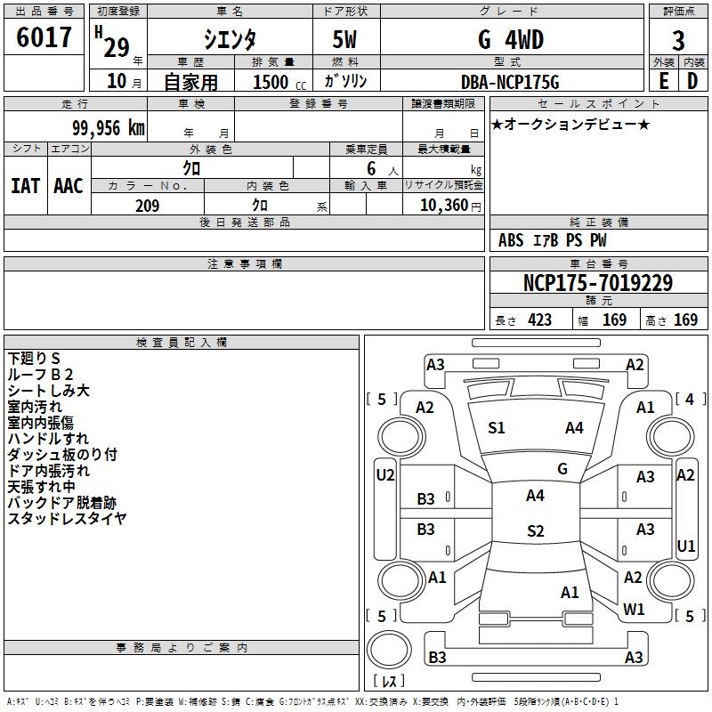TOYOTA SIENTA - лот 6017