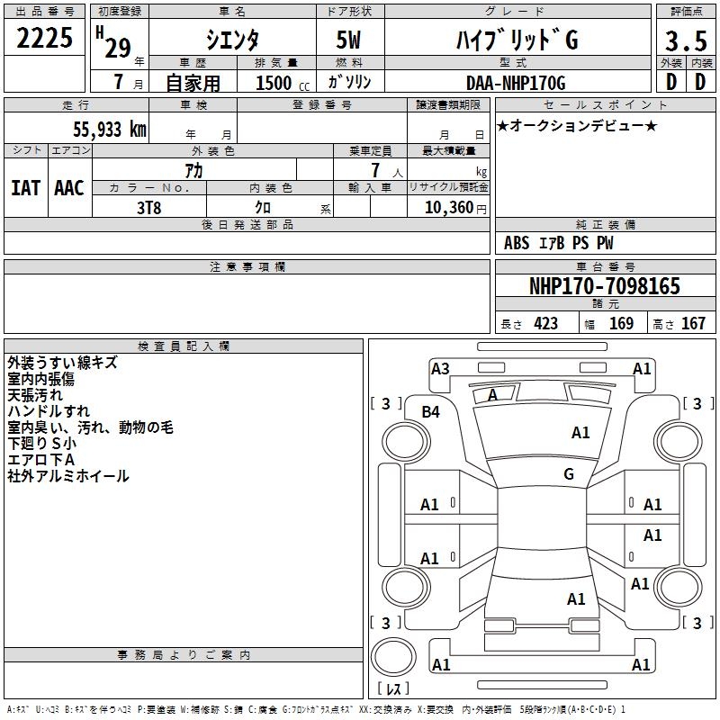 TOYOTA SIENTA - лот 2225