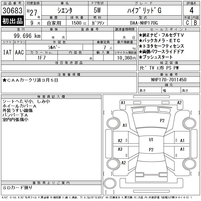 TOYOTA SIENTA - лот 30683