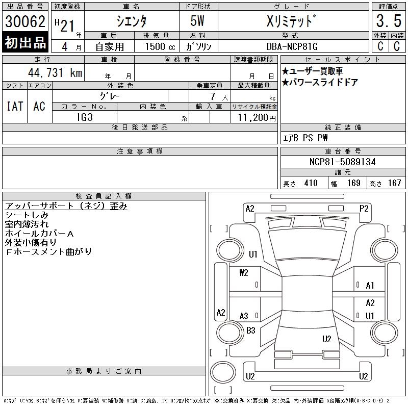 TOYOTA SIENTA - лот 30062