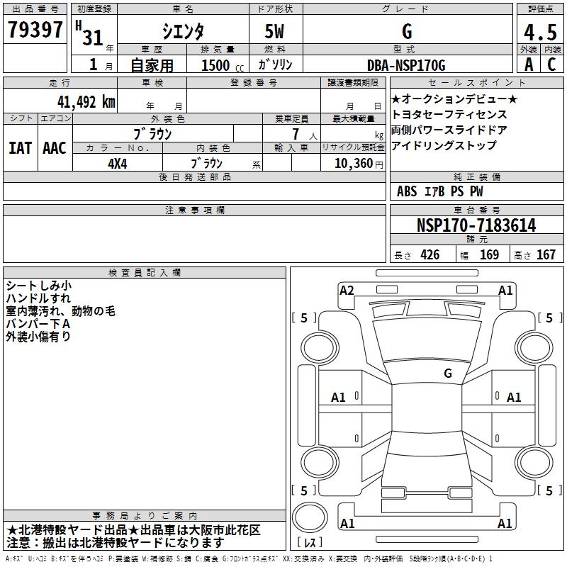 TOYOTA SIENTA - лот 79397