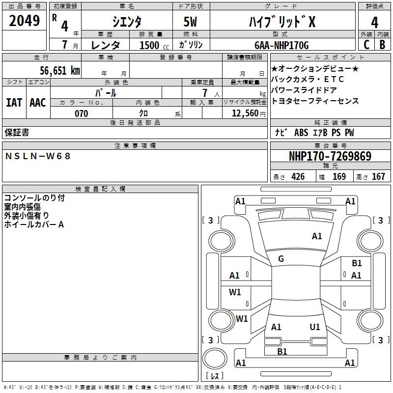 TOYOTA SIENTA - лот 2049
