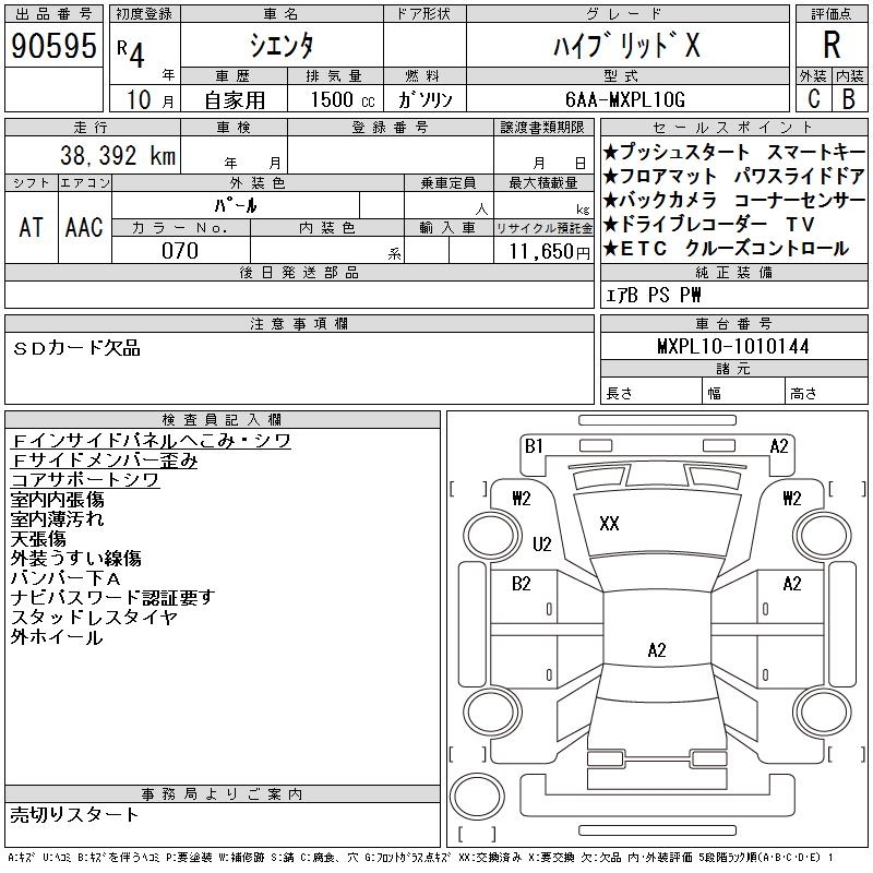 TOYOTA SIENTA - лот 90595