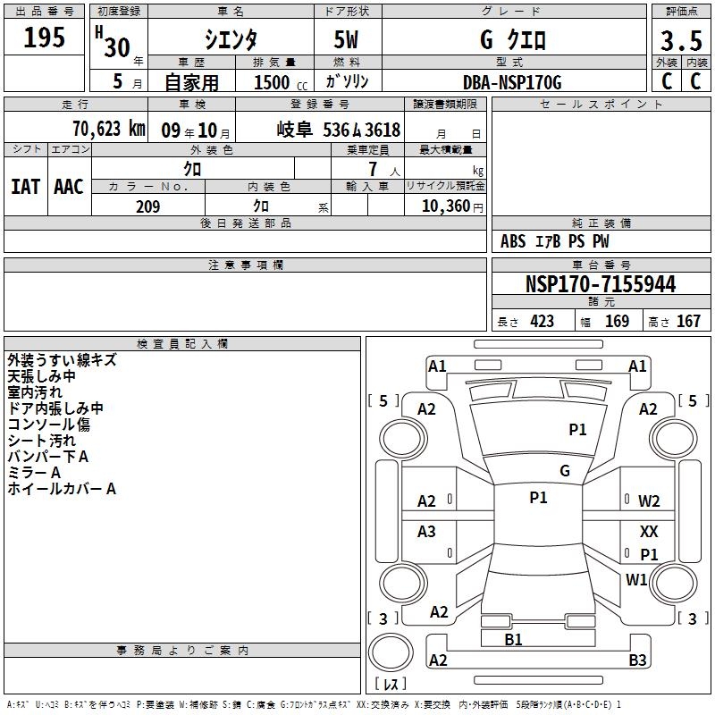 TOYOTA SIENTA - лот 195