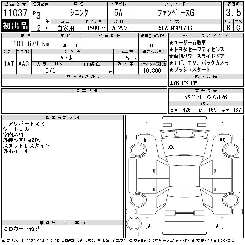 TOYOTA SIENTA - лот 11037
