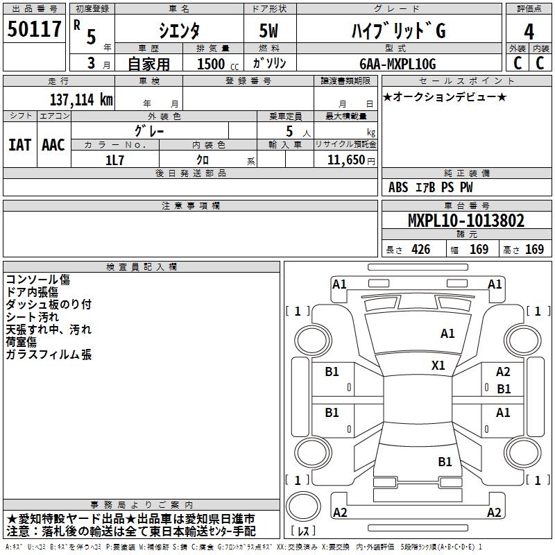 TOYOTA SIENTA - лот 50117