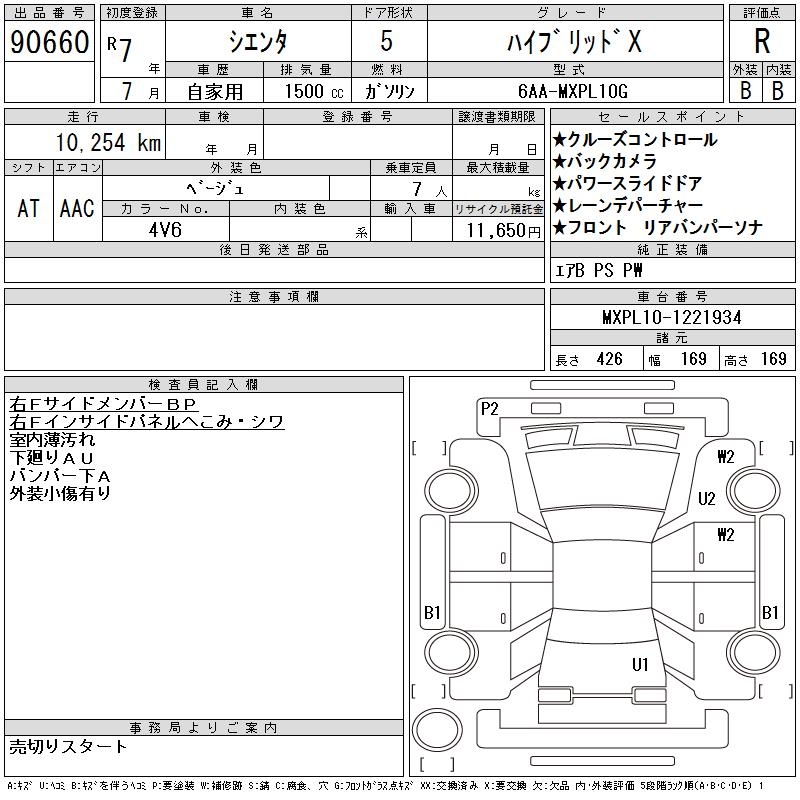 TOYOTA SIENTA - лот 90660