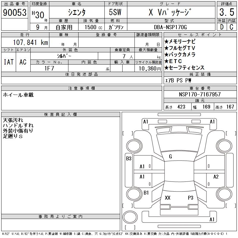 TOYOTA SIENTA - лот 90053