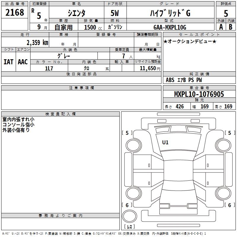 TOYOTA SIENTA - лот 2168