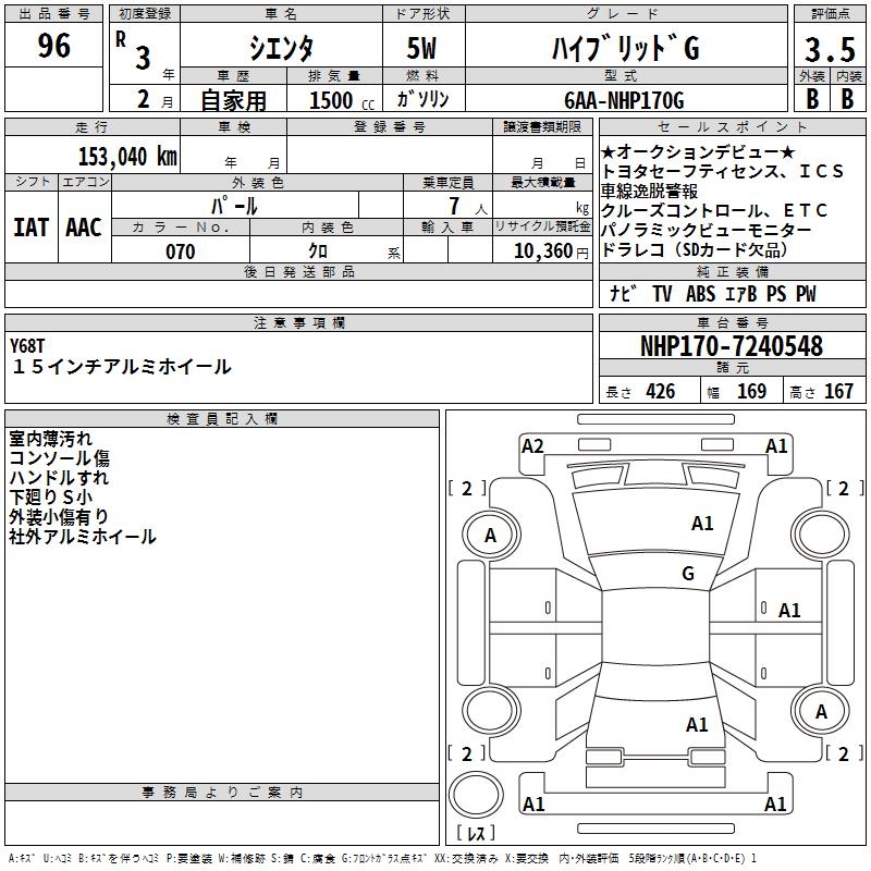 TOYOTA SIENTA - лот 96