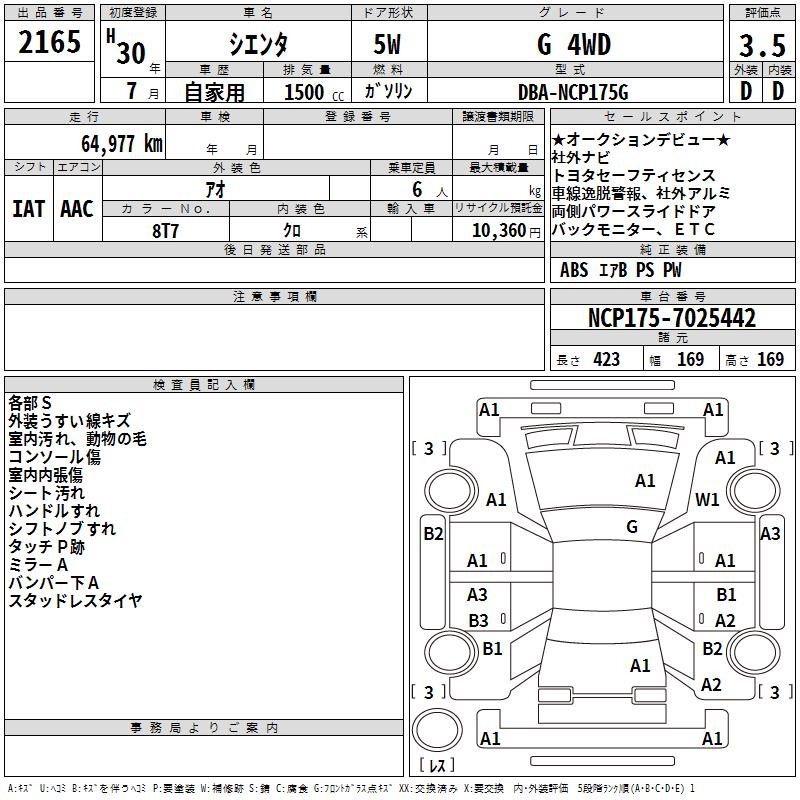 TOYOTA SIENTA - лот 2165