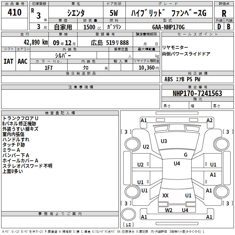 TOYOTA SIENTA - лот 410