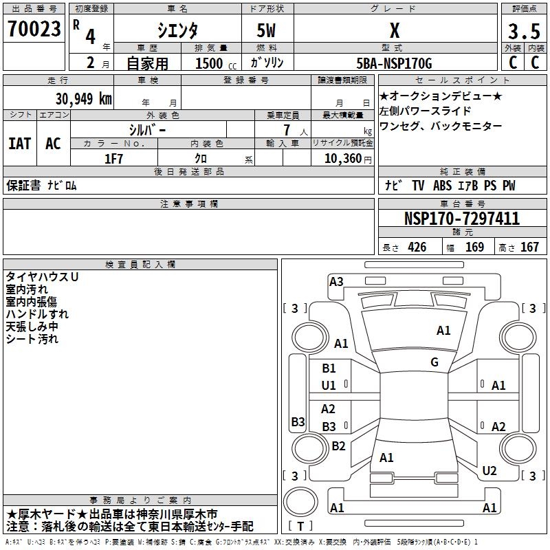 TOYOTA SIENTA - лот 70023