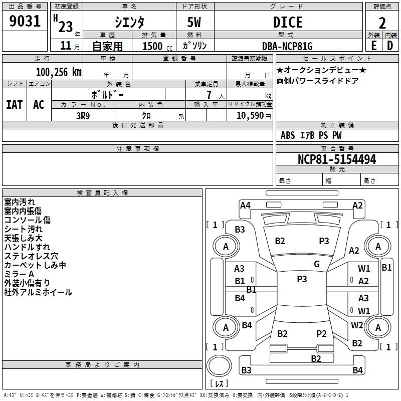TOYOTA SIENTA - лот 9031