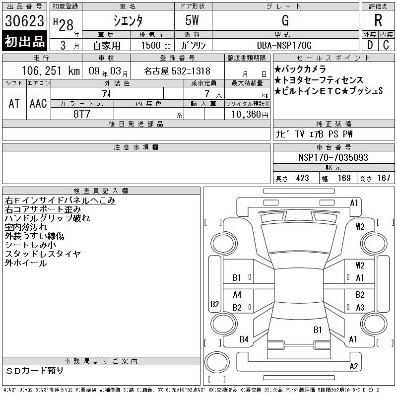 TOYOTA SIENTA - лот 30623