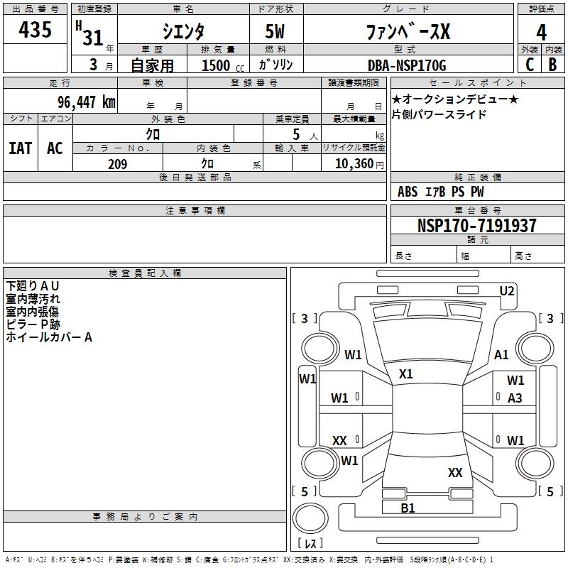 TOYOTA SIENTA - лот 435