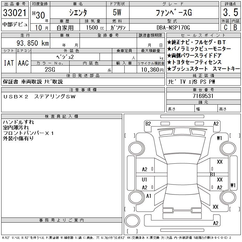 TOYOTA SIENTA - лот 33021