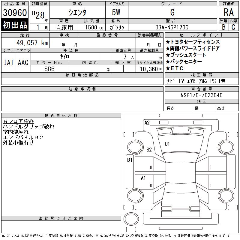 TOYOTA SIENTA - лот 30960