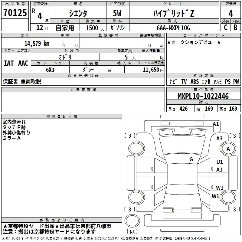 TOYOTA SIENTA - лот 70125