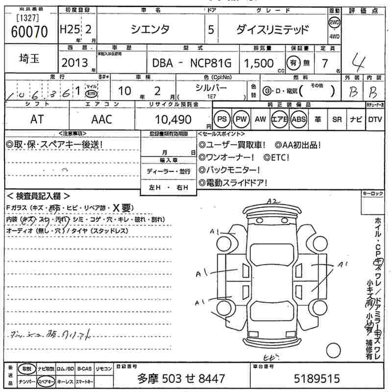 TOYOTA SIENTA - лот 60070