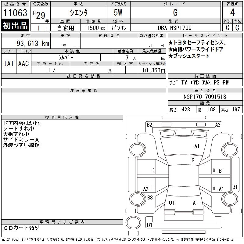 TOYOTA SIENTA - лот 11063