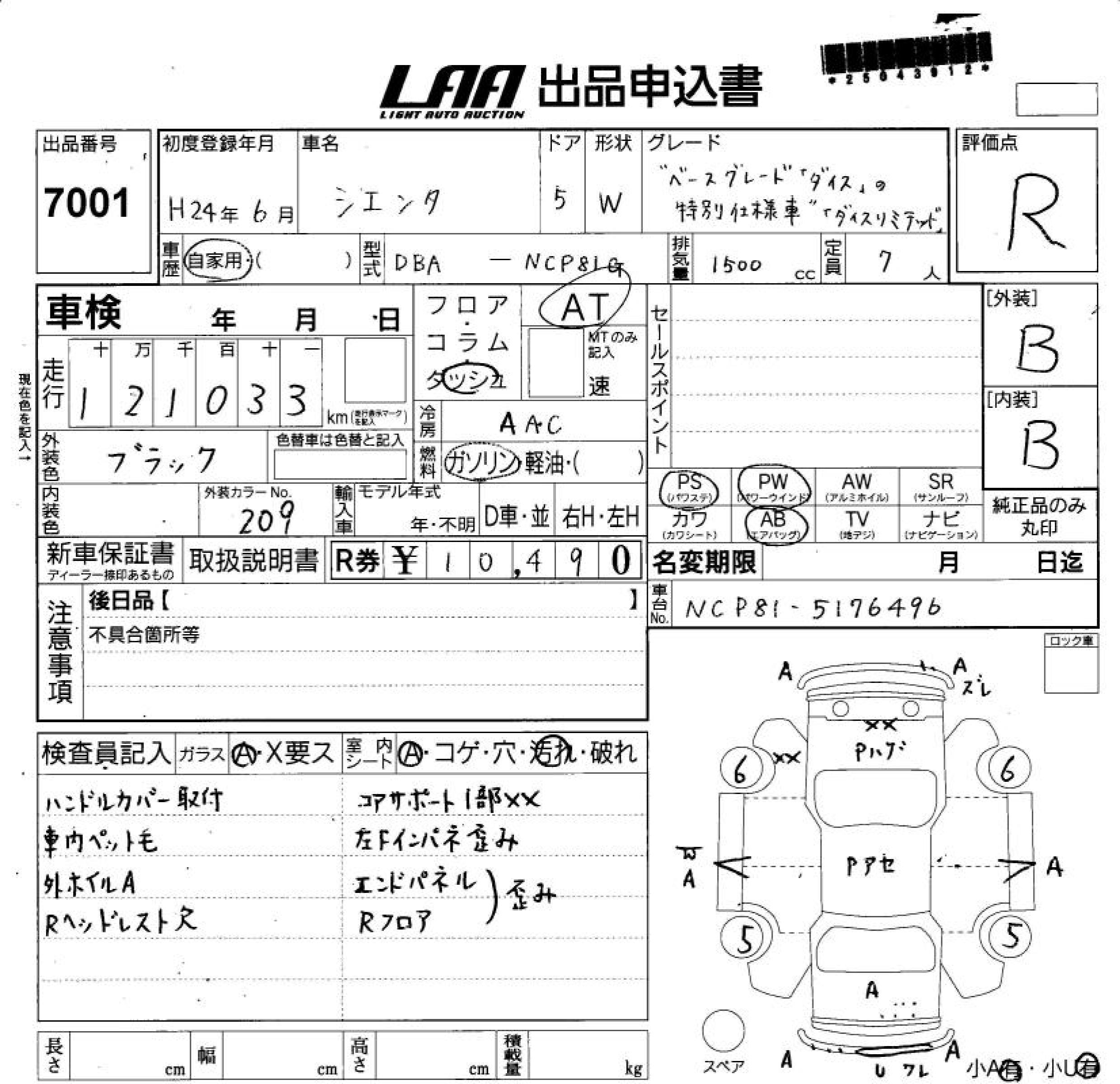 TOYOTA SIENTA - лот 7001
