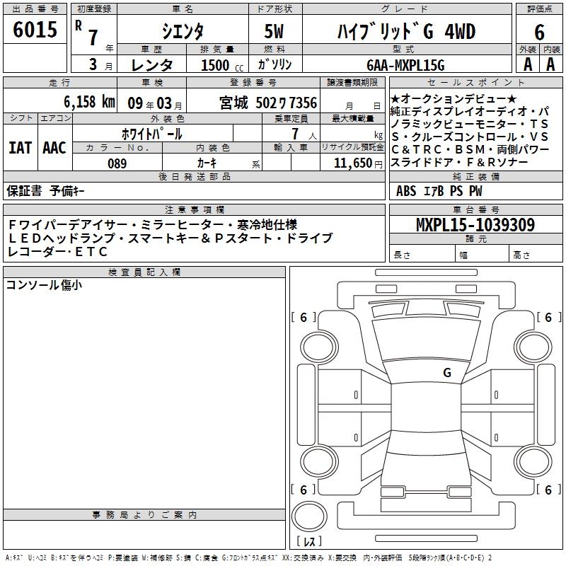 TOYOTA SIENTA - лот 6015