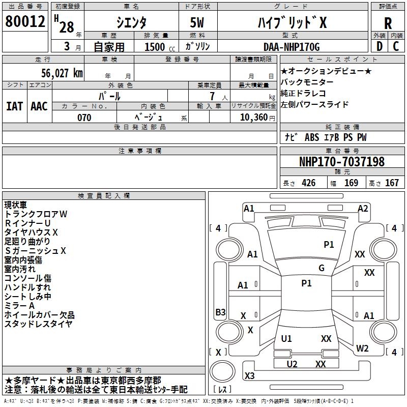 TOYOTA SIENTA - лот 80012