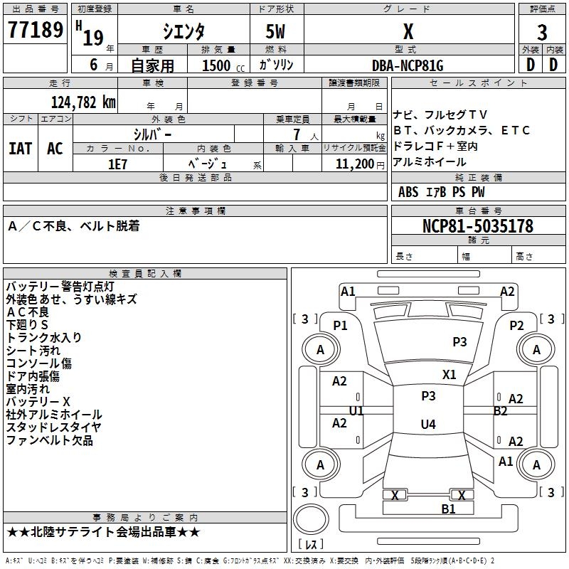TOYOTA SIENTA - лот 77189