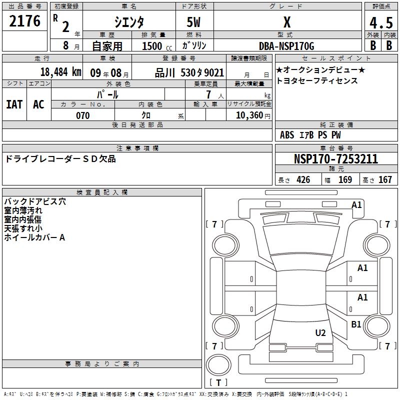 TOYOTA SIENTA - лот 2176