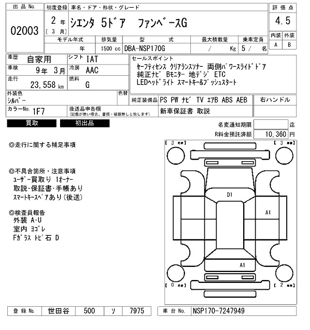 TOYOTA SIENTA - лот 2003