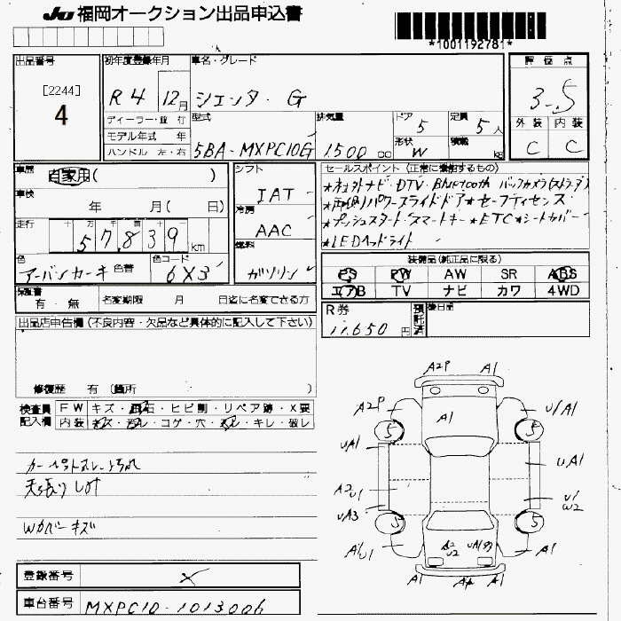 TOYOTA SIENTA - лот 4