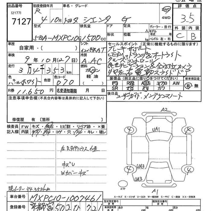 TOYOTA SIENTA - лот 7127