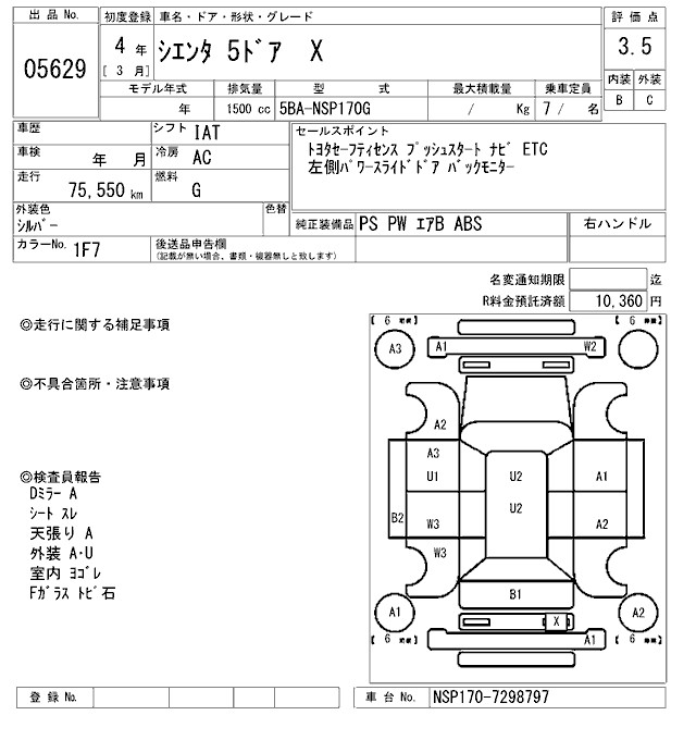 TOYOTA SIENTA - лот 5629