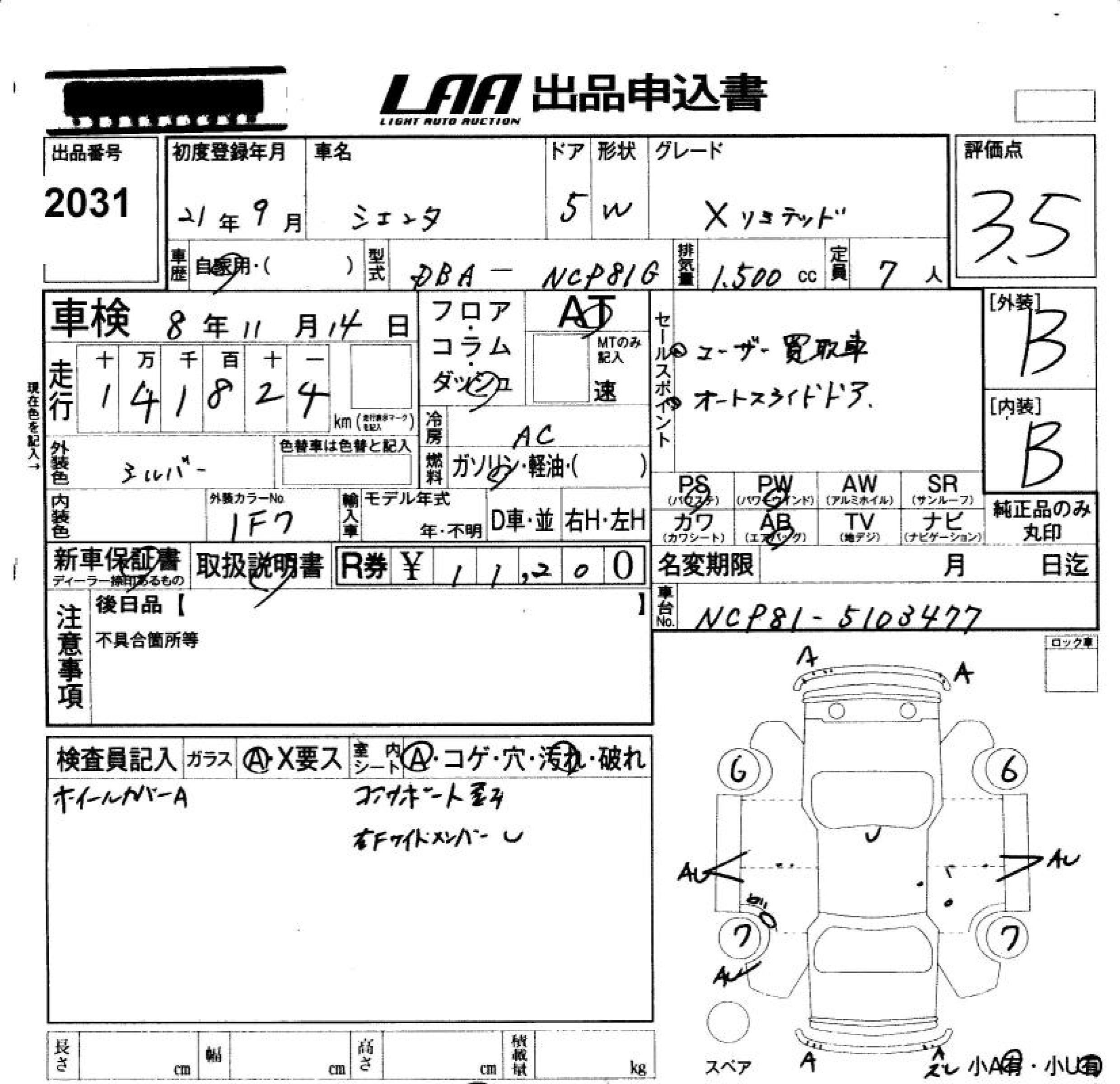 TOYOTA SIENTA - лот 2031