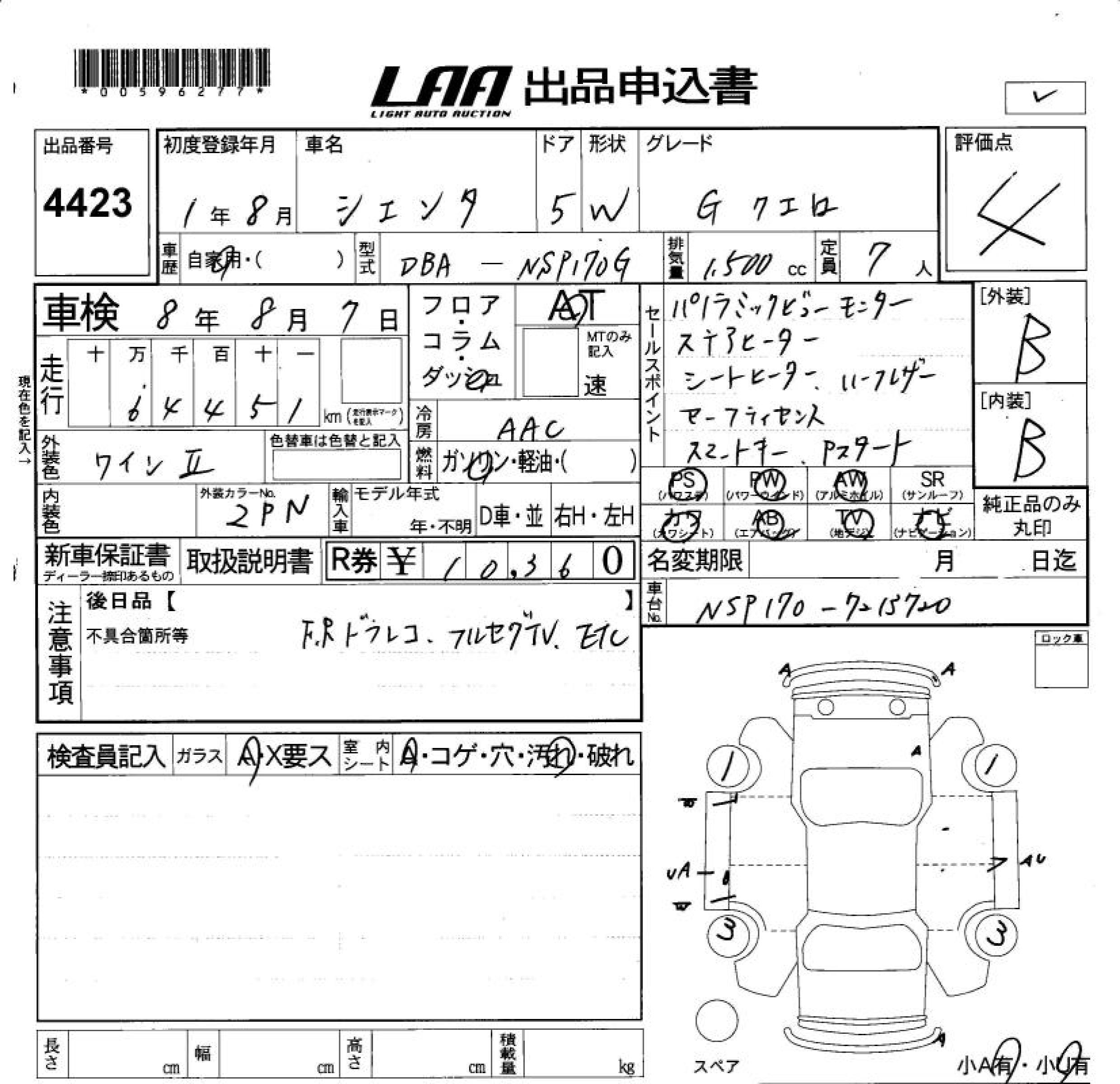 TOYOTA SIENTA - лот 4423