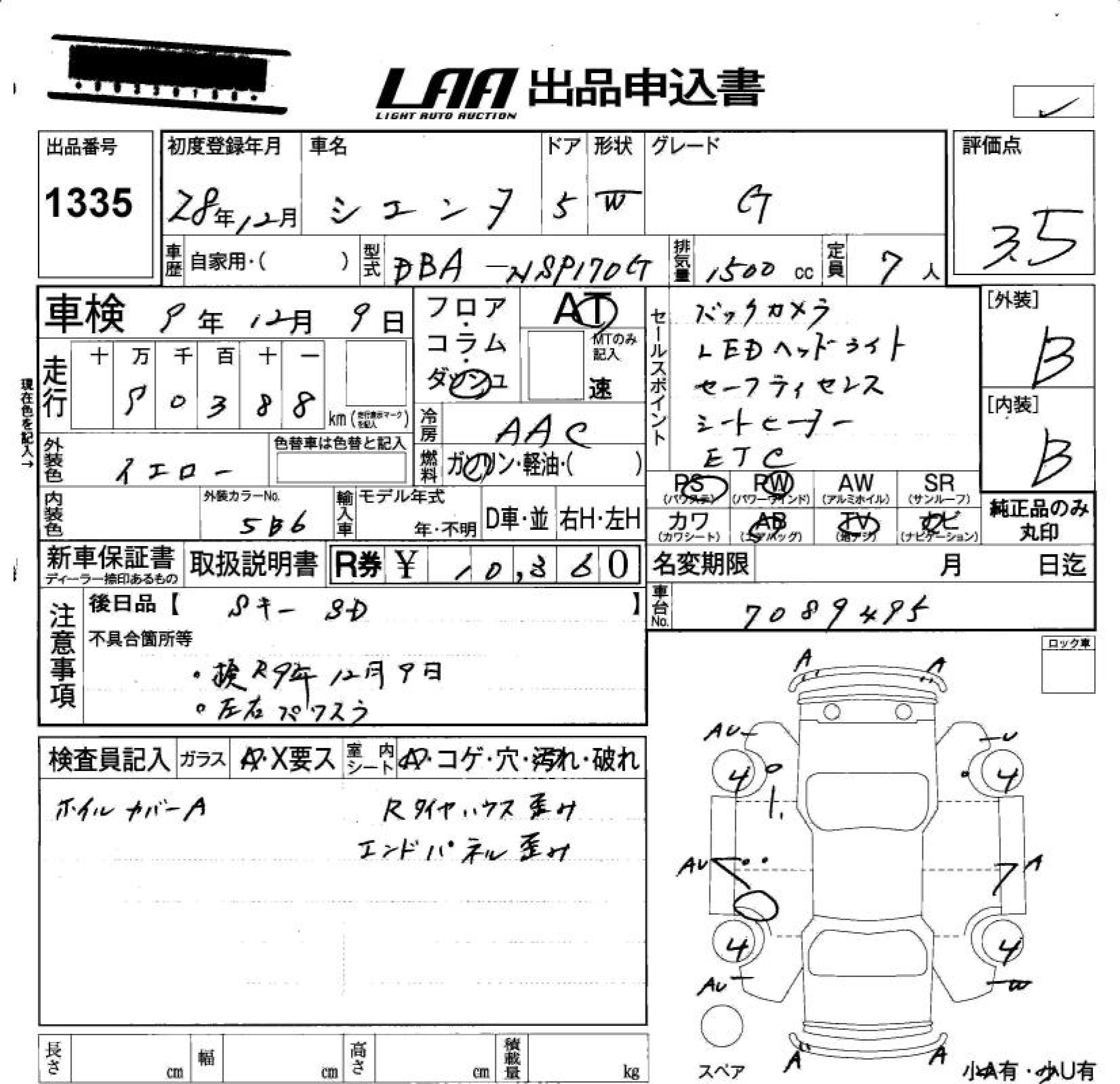 TOYOTA SIENTA - лот 1335
