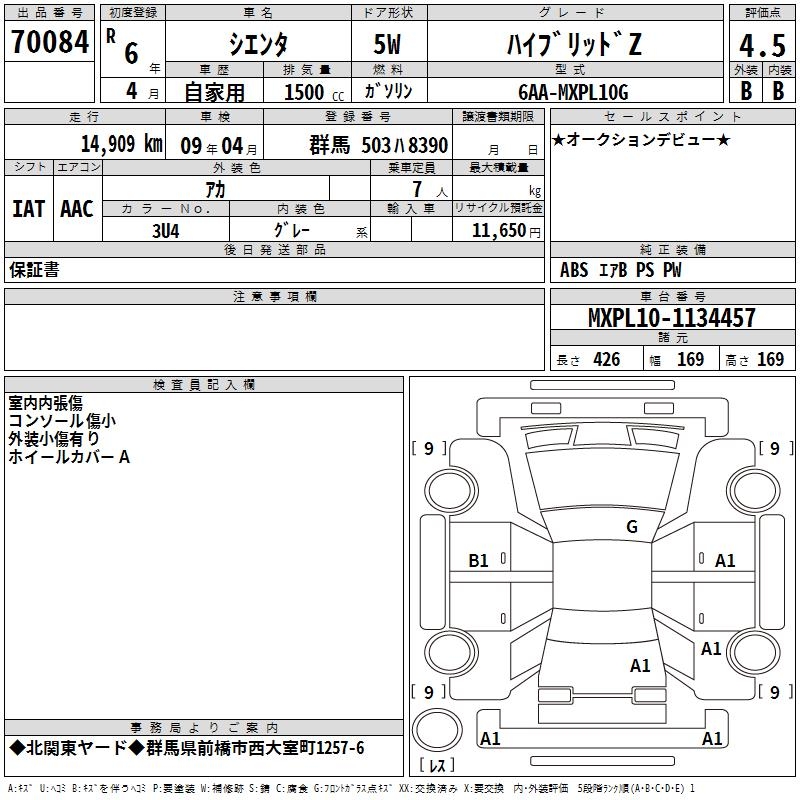 TOYOTA SIENTA - лот 70084