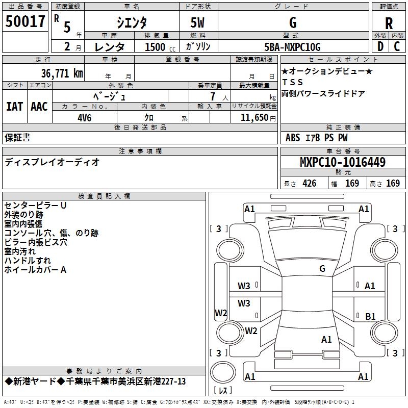 TOYOTA SIENTA - лот 50017