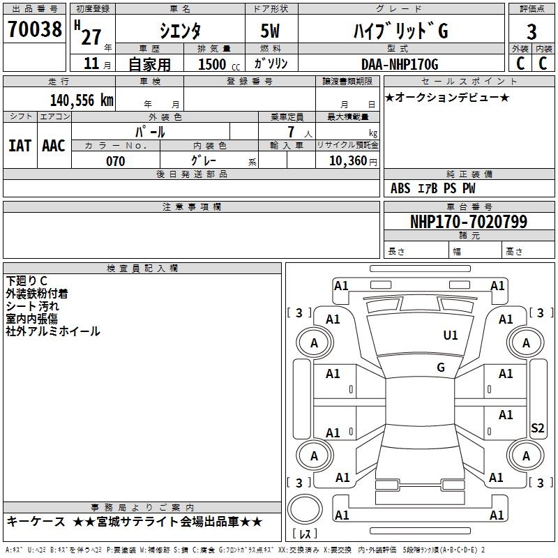 TOYOTA SIENTA - лот 70038