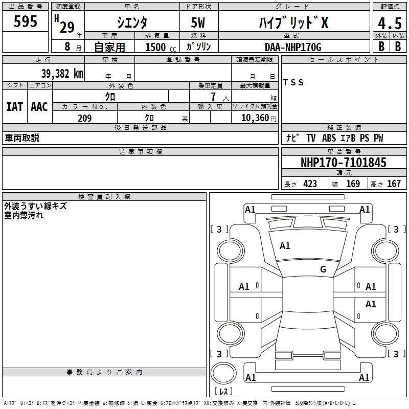 TOYOTA SIENTA - лот 595