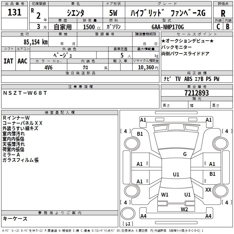 TOYOTA SIENTA HYBRID FAN BASE G - лот 131